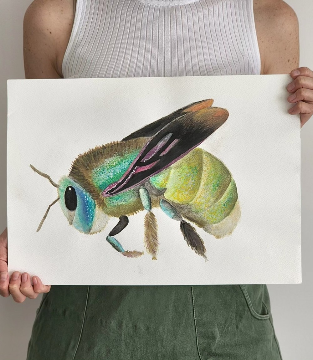 At almost an inch long, green carpenter bees are the largest native bee in southern Australia. They are one of over 2000 native bee species (only 11 of which are stingless!).